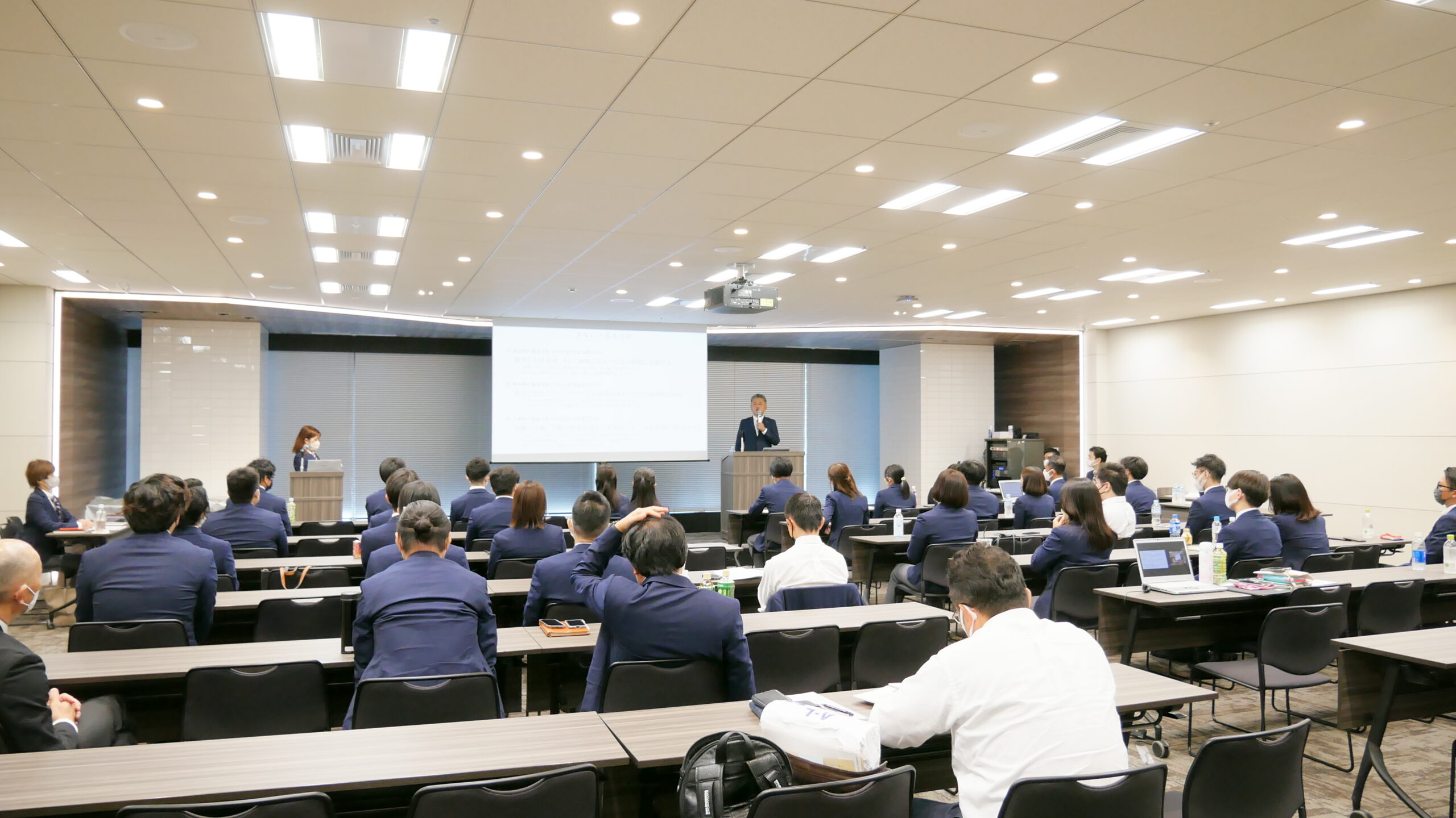経営理念の再確認、前期実績の振り返り、今期の組織編成や目標の発表の他、