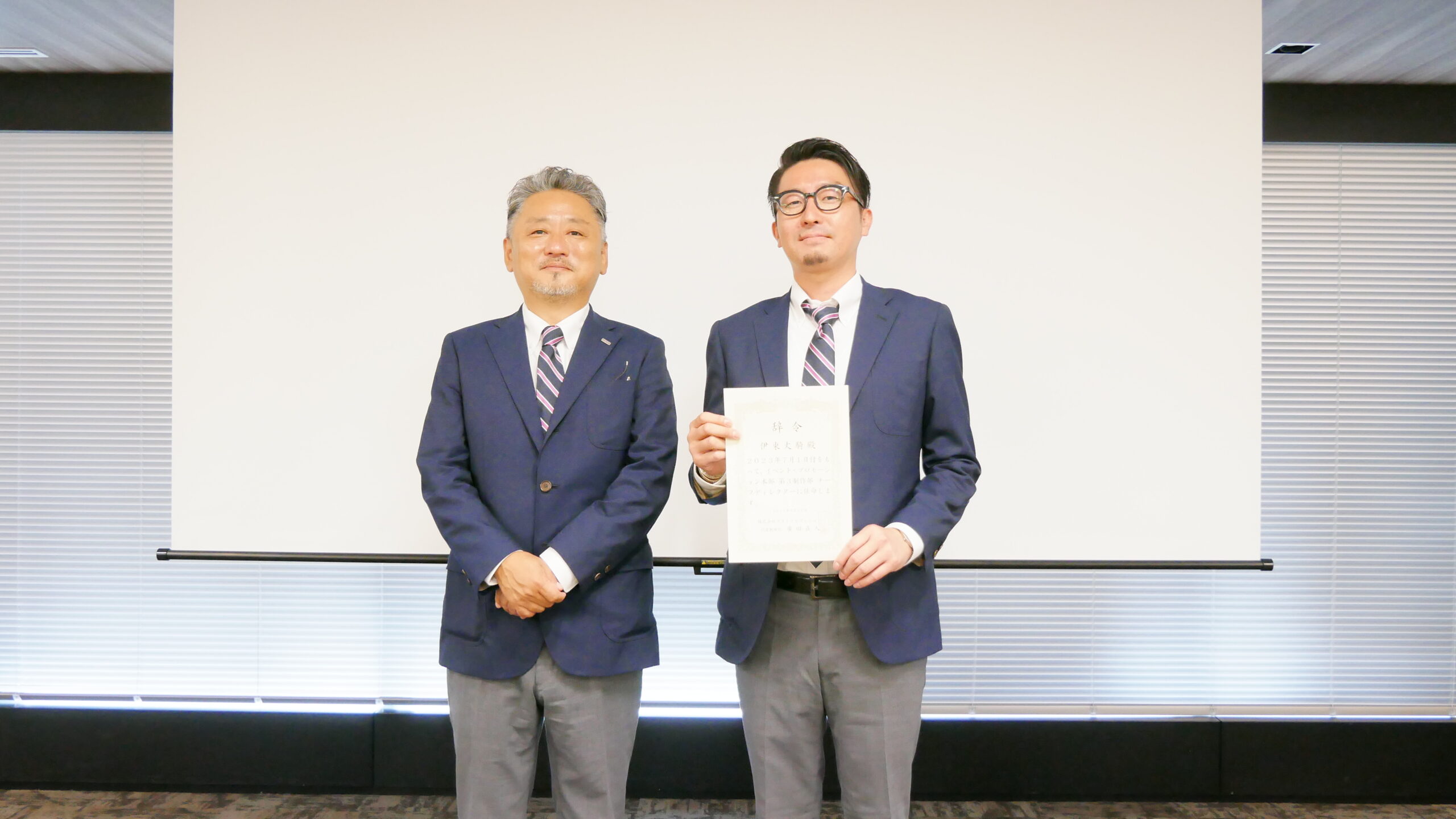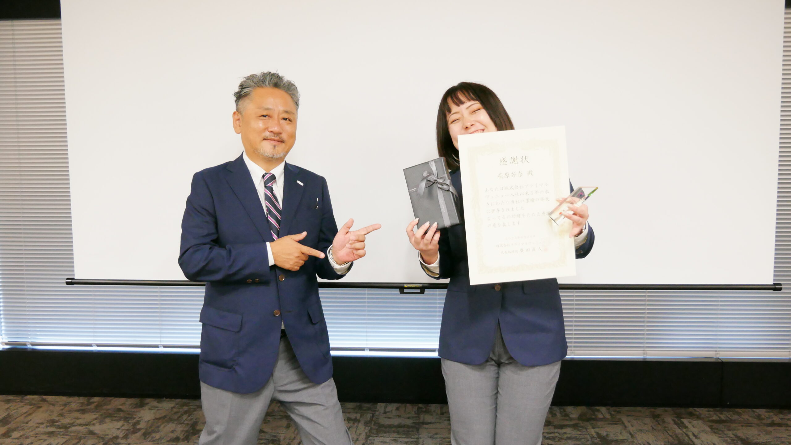 今期よりディレクターに就任、同時に勤続5年を表彰した萩原さん。(写真右)