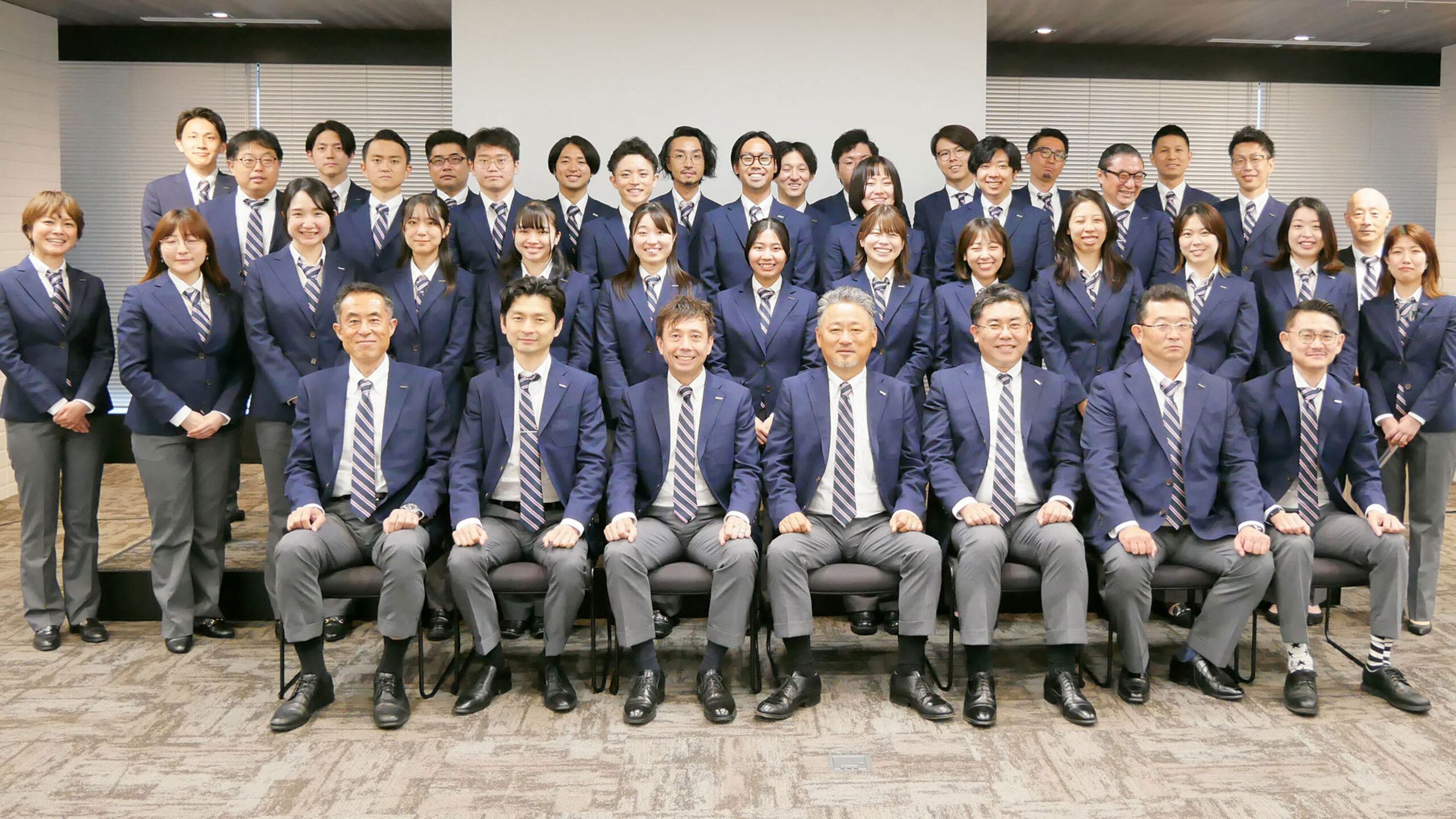 新入社員の皆さんにも、お揃いのスーツをプレゼントできました!