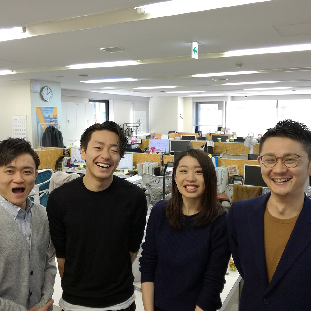 プライマルヴェニュー最初の「平成生まれ」軍団! それを引っ張るのが堀内(右端)。「平成の世代が会社を引っ張らないと!」と、社内の若手を鼓舞しています! イベント制作における安定感は若手随一! 東京モーターショウも2度メインで担当。大変だった事前作業が報われる瞬間です。 本番の成功に、見学に来た社長もご機嫌です! 2018年は営業成績もトップ! 仕事も私生活も充実するなか、30代に突入。 いよいよ念願の「自分の部」を率いて、ますます燃えています!