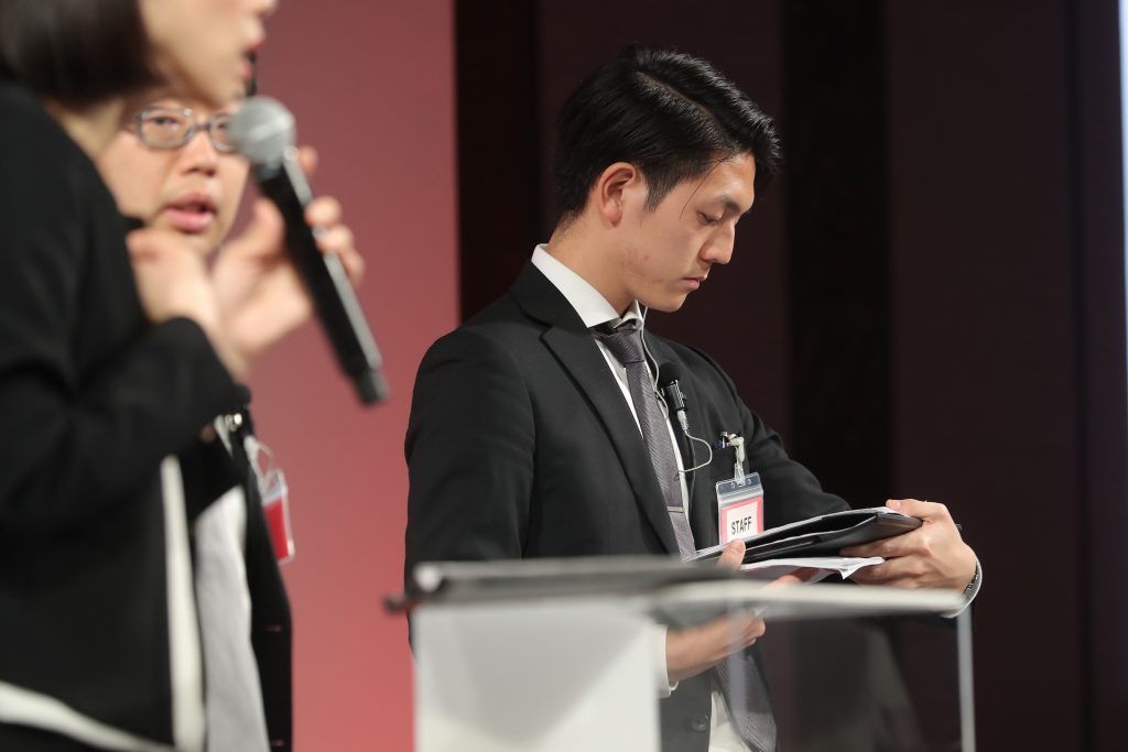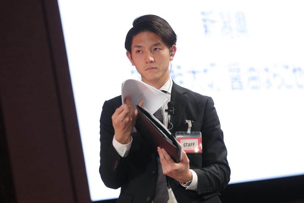 若手ディレクターとして活躍している松本。 この日は化粧品メーカーのインナーイベントです。 真剣な眼差しでイベントの進行を見守ります。 クライアントや来場者にとって、1回きりの大切なイベント。 絶対に失敗は許されない緊張感の中で、臨機応変な対応が求められます。 生真面目で、仕事は真剣な松本ですが、学生時代はダンスサークルの副代表。 意外とチャラい(?) 愛されキャラなイケメンなので、先輩からも後輩からも慕われています!