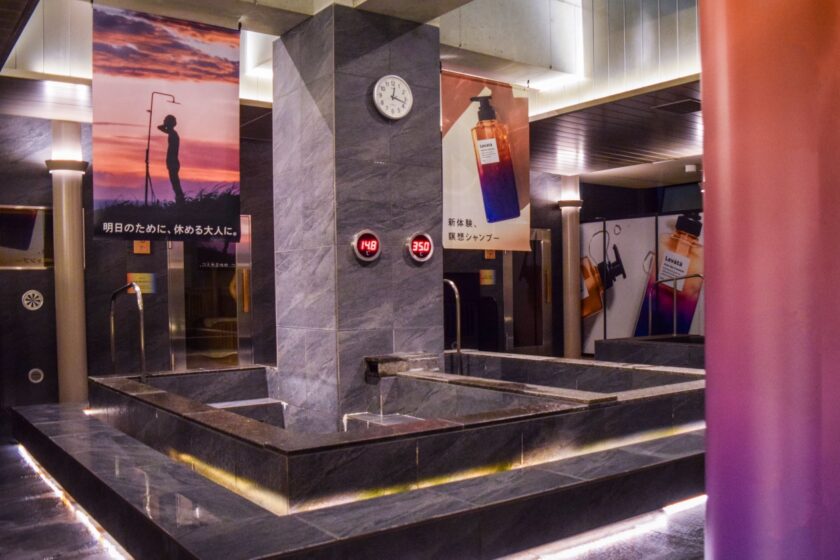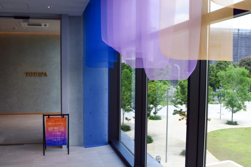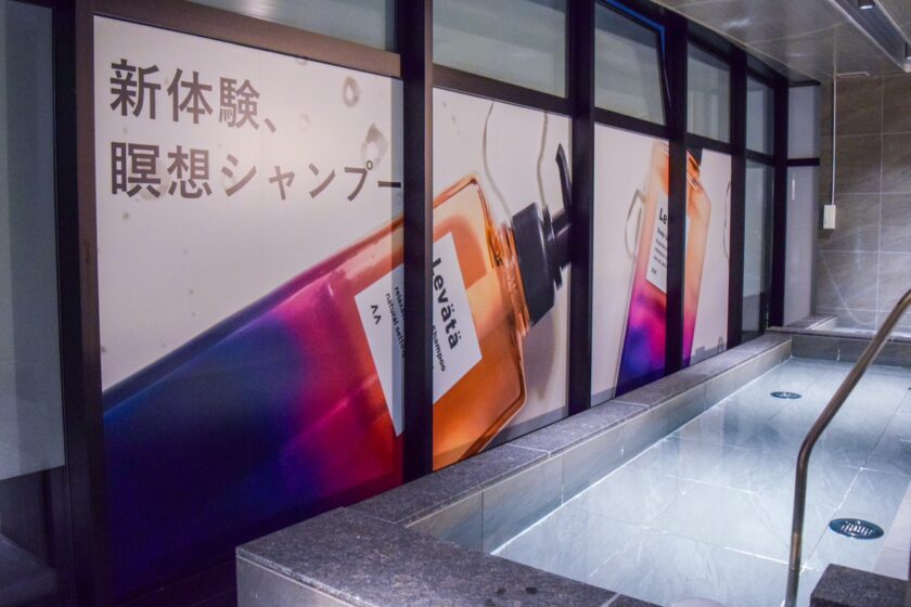 “瞑想シャンプー” Levätäのプロモーション施策として、ブランドカラーを基調とした装飾やディスプレイで、TOTOPA全体を“Levätäの世界観”に染まる特別仕様に。弊社では装飾提案と施工を担当。