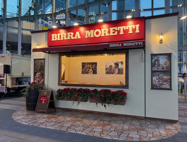 「ビッラモレッティ」と様々なイタリア料理とのペアリングを堪能いただける、入場無料のイベント。 渋谷川の流れるストリーム前広場にてイタリアの世界観を再現した空間の中でビールならびにフードの提供を行った。