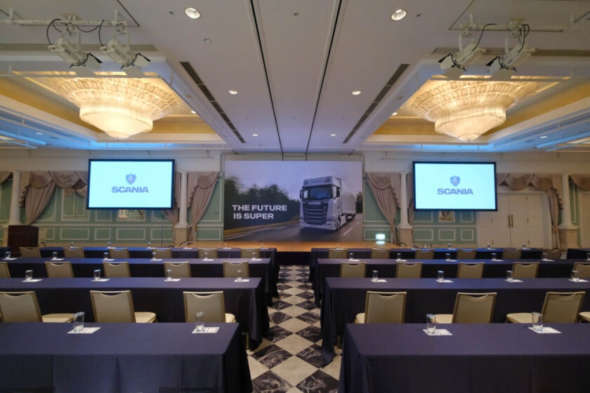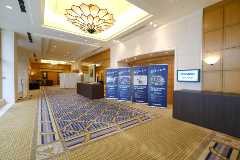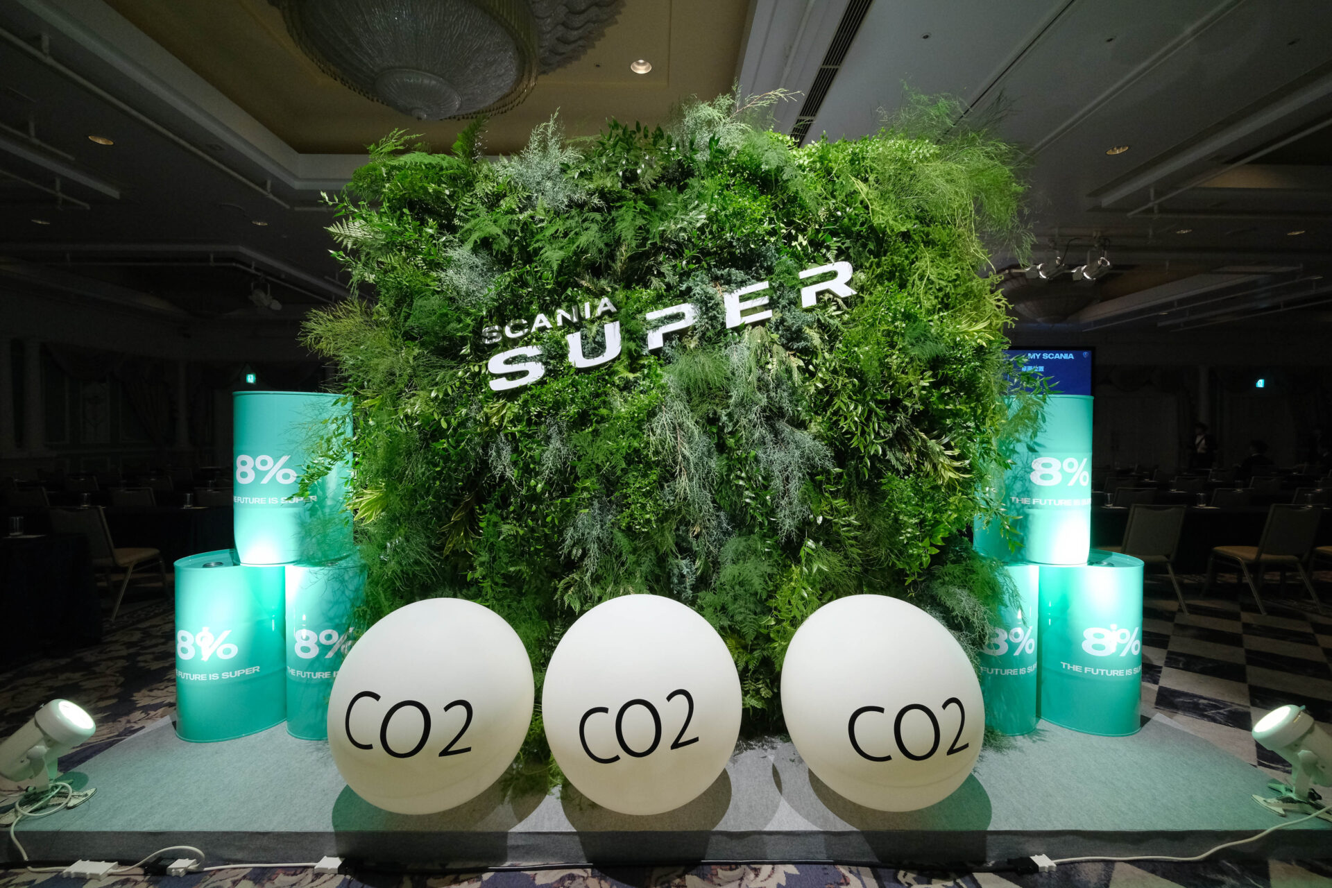 顧客を誘致し、新型Superの発表プレゼンテーションを行ったイベント。 Scaniaトラックが環境へ配慮しているイメージを伝えるためにグリーンウォールを会場入り口に展開。